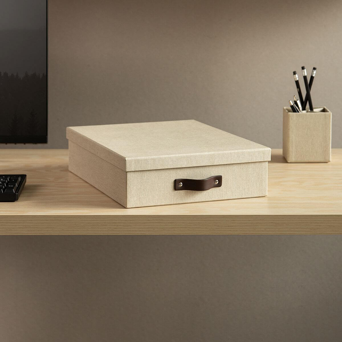 Dokumentenbox OSKAR aus Holzfaserplatte – Eleganz und Stabilität in Leinenoptik