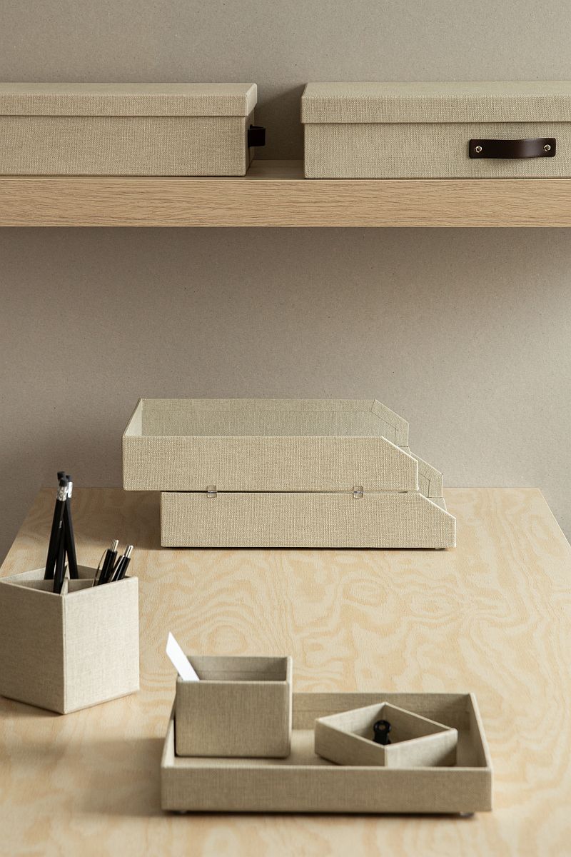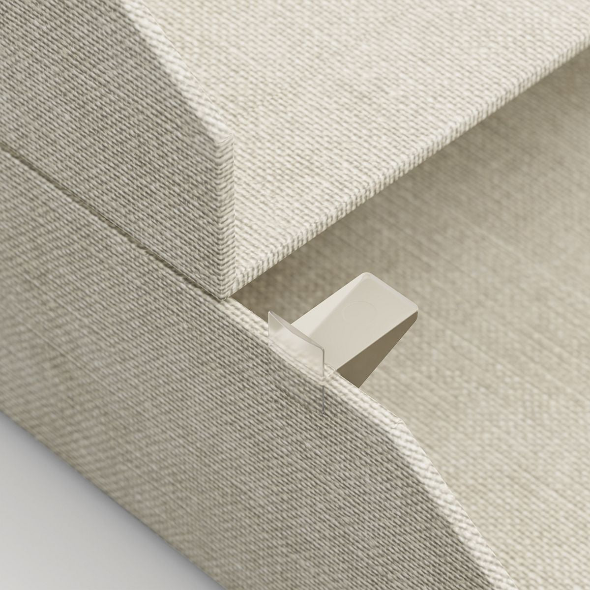 Die feine Leinenstruktur verleiht den Postfächern eine exklusive Haptik, während die stabile Konstruktion für zuverlässigen Halt sorgt – selbst bei täglichem Gebrauch. Sauber gearbeitete Kanten, präzise Passformen und eine angenehm matte Oberfläche unterstreichen die Premium-Qualität dieses Ordnungshelfers.