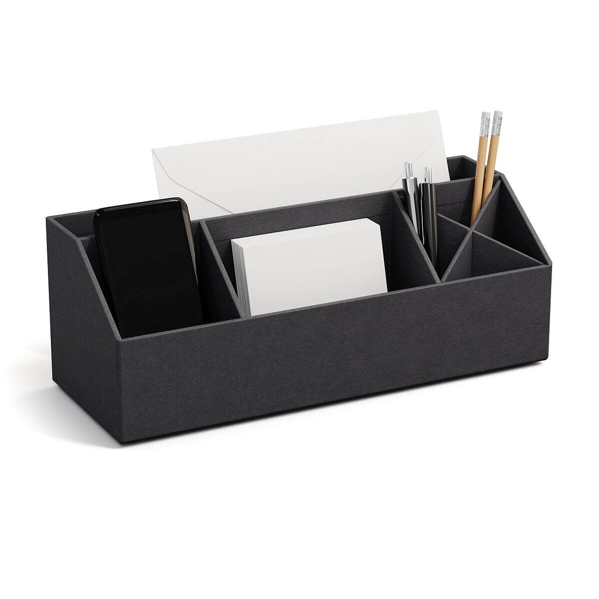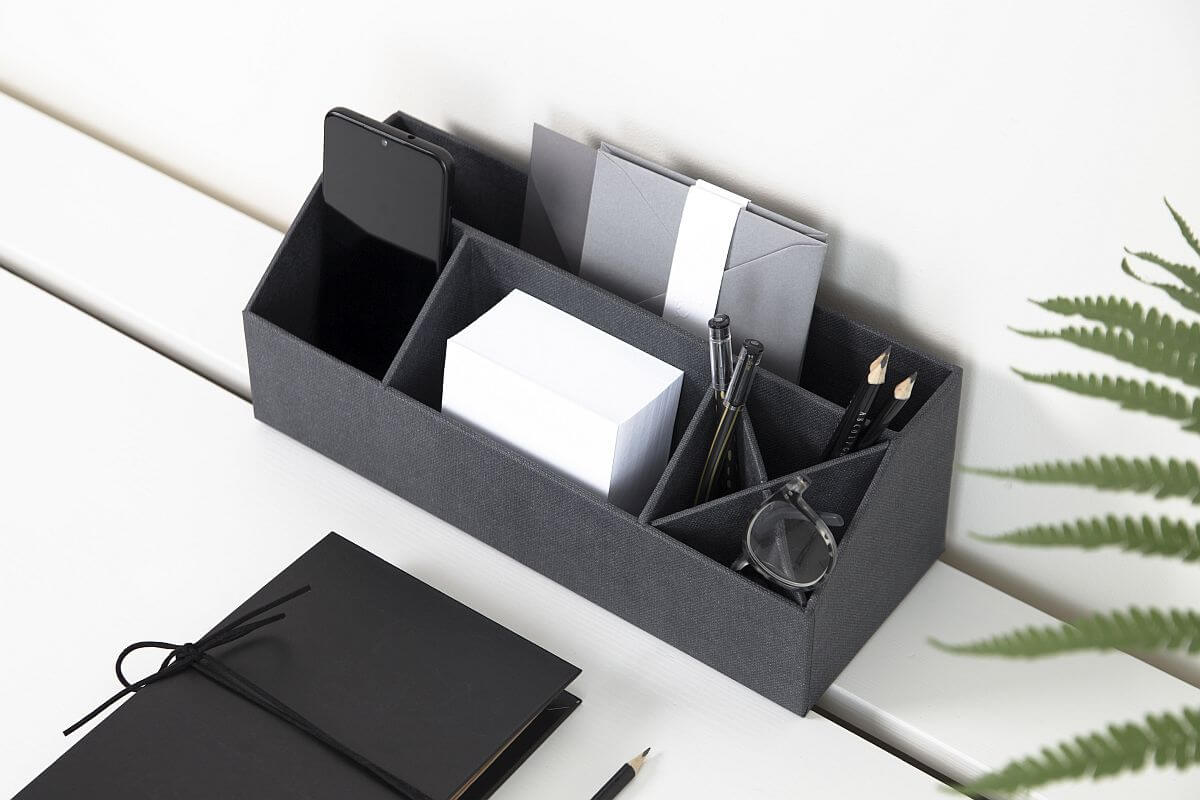 Ob Stifte, Notizen, Büroklammern oder kleine Alltagsutensilien – in den clever angeordneten Fächern findet alles seinen festen Platz. Die stabile Verarbeitung sorgt für Langlebigkeit, während das dezente Design für eine aufgeräumte, ruhige Arbeitsatmosphäre sorgt.