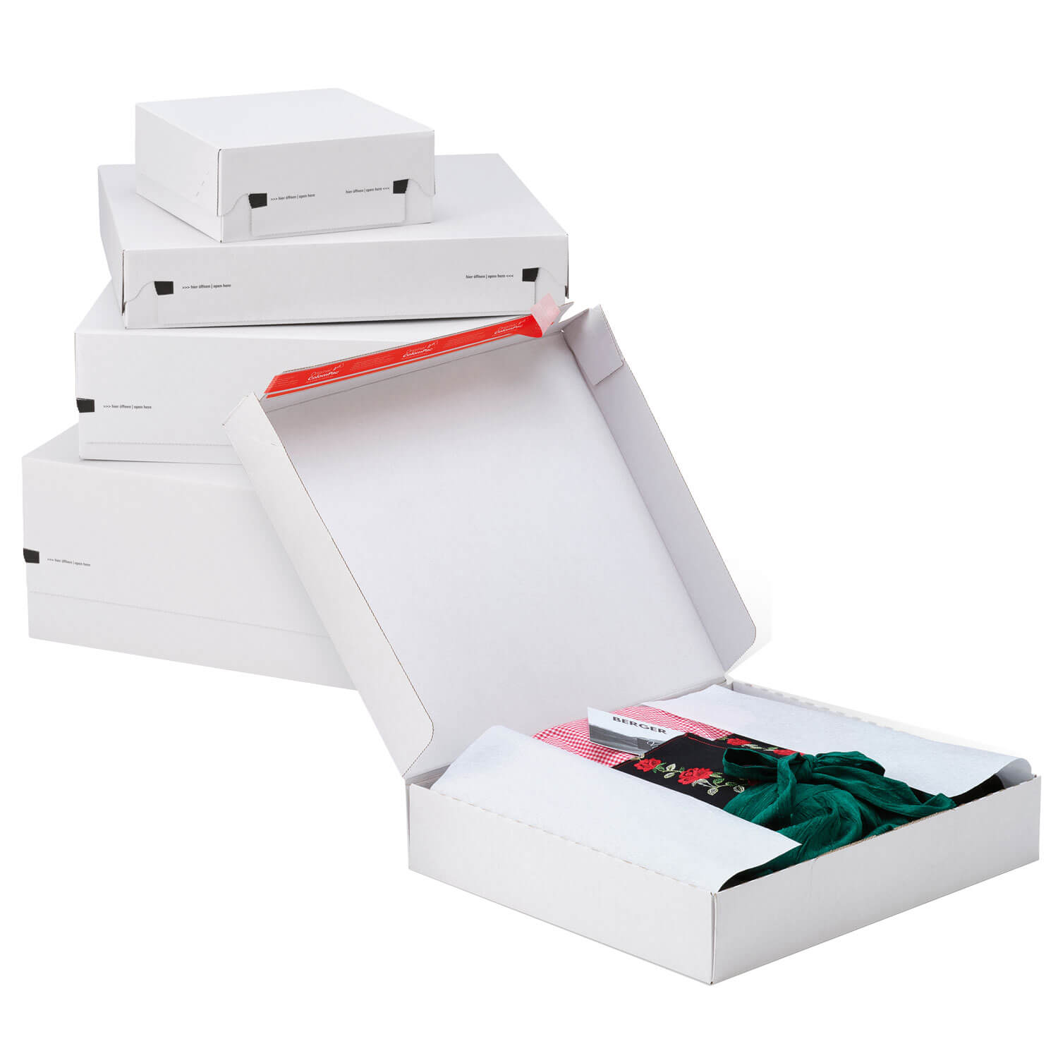 ColomPac Fashionbox mit Selbstklebeverschluss, weiß, diverse Formate, 20 bzw. 15 Stück/Packung