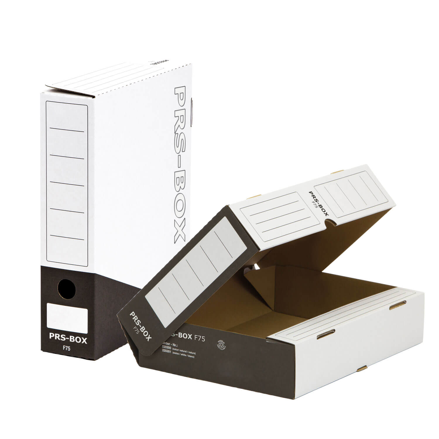 PRS Ablagebox F75, Weiß/Schwarz, 75mm, 20 Stück
